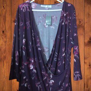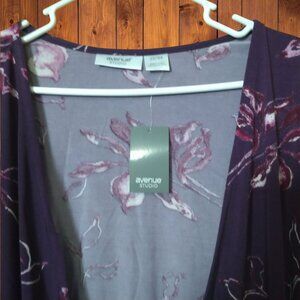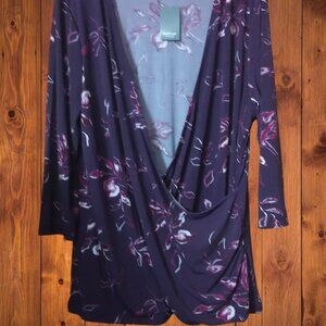New Avenue Studio women's plus size 22/24 plum midnight floral blouse is a pullover. It has crossover front with v-neckline.