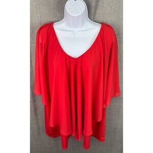 Avenue Studio Women's Plus Size 30/32 Blouse With Flowy Layers Deep Coral