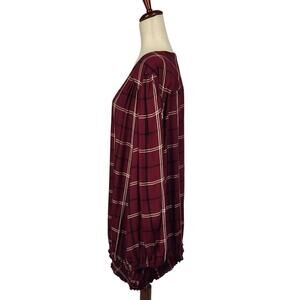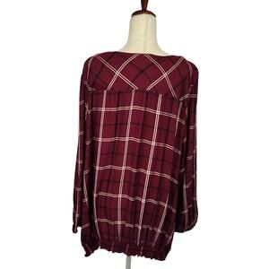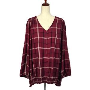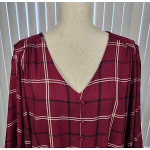 Avenue Suki Check Top V-Neck Long Sleeve Button Detail Berry Size 30/32 (4X)