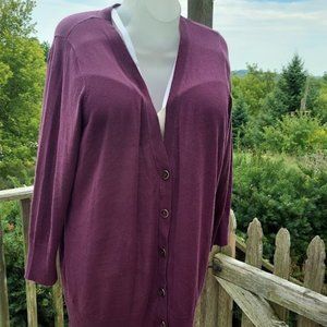 Avenue Sweater Collection Plus Size 26/28 Plum Cardigan - Acrylic Button Down