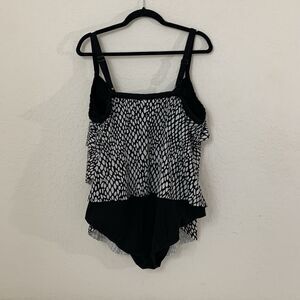 Avenue Swimsuit One Piece Women 24 Black White Dot Ruffle Tiered Beach Coastal