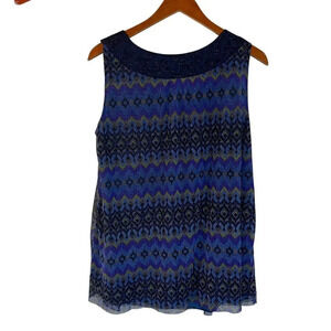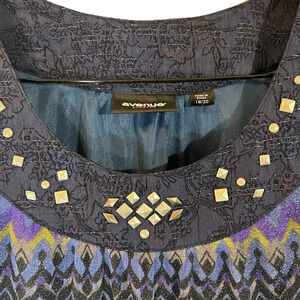 Avenue Tank Top Blouse 18/20 Metallic Geometric Studded Embroidered Neckline