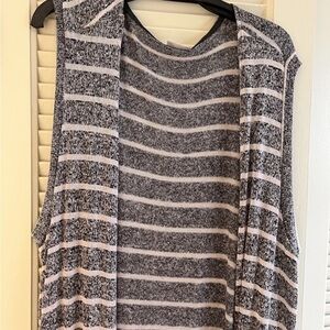 Avenue Thin Knit Striped Open Front Long Cardigan Size 18/20