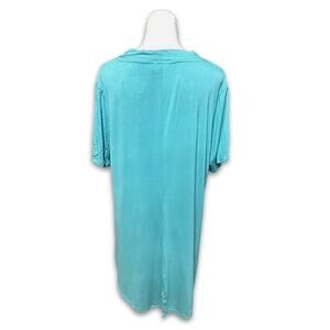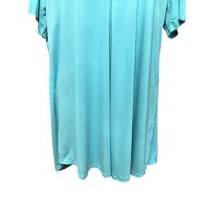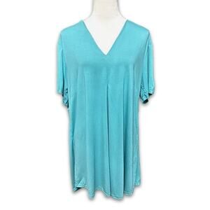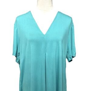 Avenue Top Hi-Low V Neckline Short Sleeves Pleated Front Blue Green Plus 18 NWT