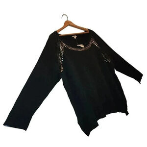 Avenue Top Womens Size 22/24 Black Shimmer Round Neck Studded Slit Pullover