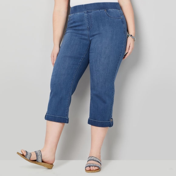 Avenue Ultimate Fit Pull On Capri Button Cuff NWT