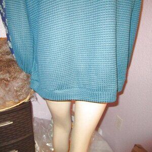 Avenue WAFFLE Knit Size 14 16 TUNIC Top THERMAL Mix Media CROCHET Balloon Sleeve