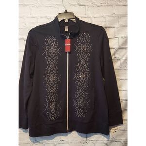 Avenue Womens Size 14/16 Zip Front Rhinestone Black Jacket Stretch Lightweight Pockets NWT