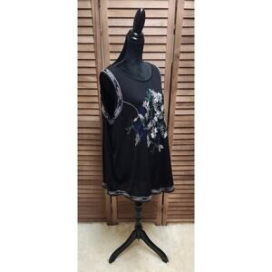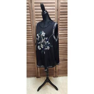 Avenue Womens 22/24 Black Mesh Embroidered Floral Sleeveless Business Casual Top