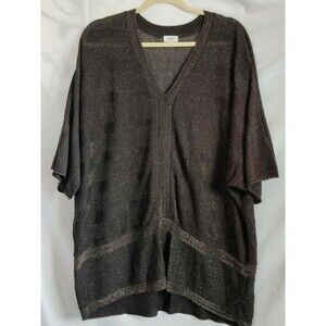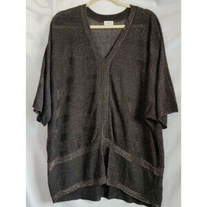 Avenue Women's Black & Gold Metallic Strip Top Blouse Short Sleeve V-Neck Size 26/28