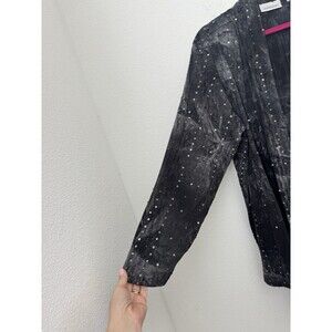 Avenue Women's Black Sequin Open Front Cardigan Blouse Duster Slinky 18/20
