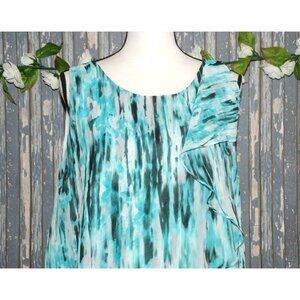 Avenue Womens Blouse Tank Top Plus Size 14W 16W Layered Ruffles Back Slit Hi-Low