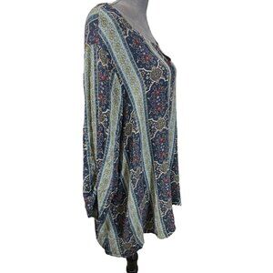 Avenue Womens Boho Tunic Green Floral Gauzey Ruched Tie Sleeves Plus Size 30/32