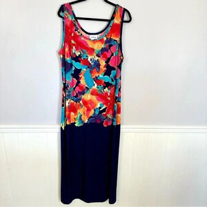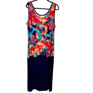 Avenue Women's Multicolor Floral & Navy Blue Block Sleeveless Maxi Size 18/20