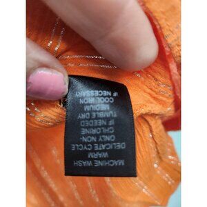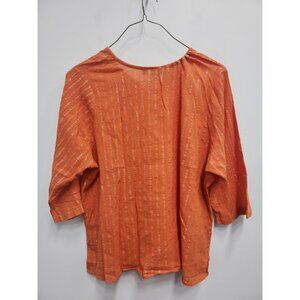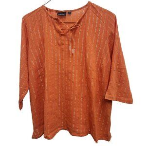 Avenue Womens Peasant BOHO Top Size 26/28 Orange Metallic Striped 3/4 Sleeve