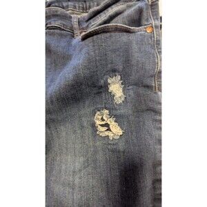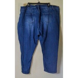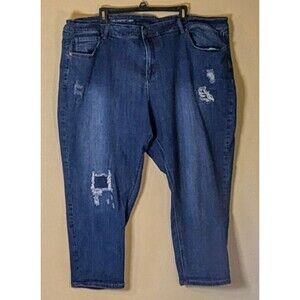 Tags: Avenue plus size jeans, 28W capri denim, distressed boyfriend jeans, cropped plus size jeans, patchwork capri pants, Y2K style denim, casual summer jeans, stretch denim plus size, relaxed fit capris, Avenue denim distressed