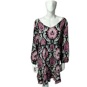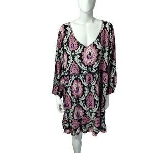 Avenue Women's Plus size 22/24 Floral Medallion Bohemian Mini Dress Flowy Tunic