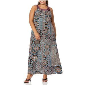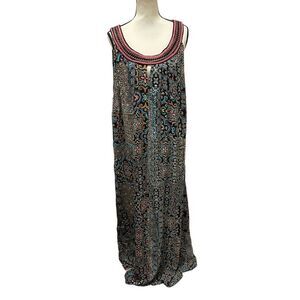 Key Features Include: - Scoop neckline - Sleeveless - Keyhole cut out detail - Dual hook and eye closure -Neck embroidery with hardware detail - Relaxed fit - 100% Viscose - Maxi length - Unlined