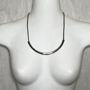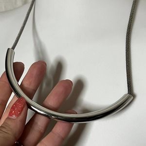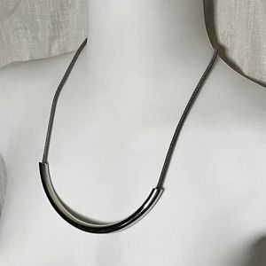 Avenue Women's Silver-Tone Metal Curved 1/2 Tube & Tube Chain Necklace