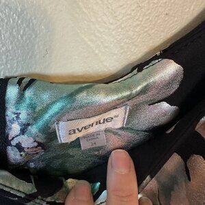 Avenue Womens Size 24 Metallic Black and Green Floral Sheath Midi Dress Evening