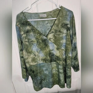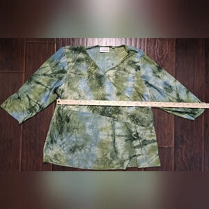 Avenue Womens Stretchy Green V Neck Long Sleeve Blouse