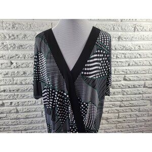 Avenue Womens Top 22 24 Plus Short Sleeve Black Geometric Poly Blend GEO367E