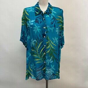 Avenue Women's Top Size 22 24 Blue Green Multicolor 100% Rayon Leaves Sheer