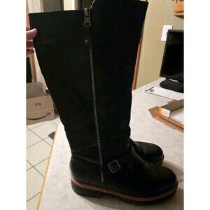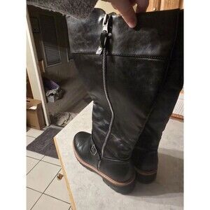 The Avenue Women's Myla Tall Shaft Boots in size 10 Wide are designed for those seeking a stylish and comfortable footwear option. The knee-high boots feature a wide calf width, making them suitable for plus-size individuals. With a flat heel and wide width, these black faux leather boots offer a biker, grunge, or outdoor-themed look, perfect for casual occasions. The lightweight design, synthetic lining and insole, along with the faux leather outsole provide both durability and comfort for all-day wear.