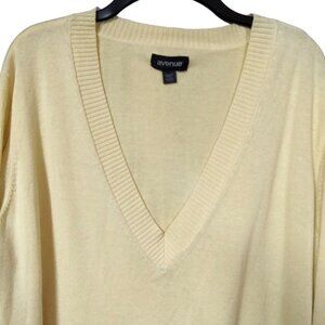 Avenue Womens Yellow V Neck Pull Over Knit Sweater Long Sleeve Plus Size 18/20
