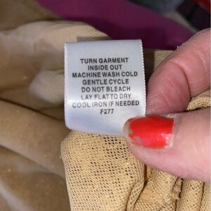 You’ll look like a million bucks in this elegant gold lace top. Flows away from the body.