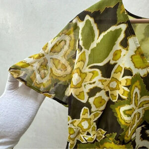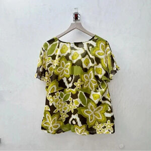 Avenue || Y2K Women's Blouse Avocado Green Hibiscus Floral Size 14 / 16