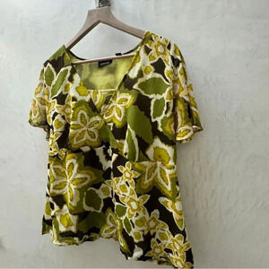 Avenue || Women's Blouse Avocado Green Hibiscus Floral Size 14 / 16