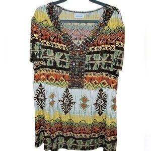 Avenue size 22/24 top. Bright colorful stone accents on front. V neck