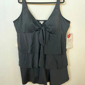 Avenue sz 28 Tiered Black Swim Dress Plus Size One Piece Swimsuit Bow 4th July