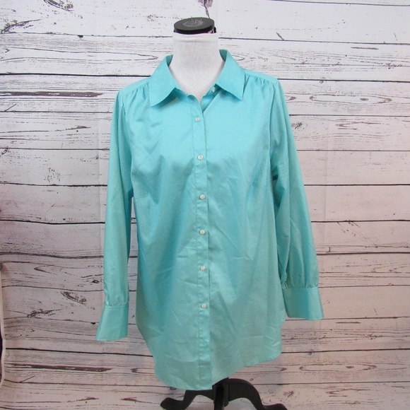 Avenue turquoise "The Bedford" tone-on-tone herringbone/textured print long-sleeved button down oxford top