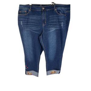 Avenue Blue Jeans High Rise Embroidery Flower Roll Cuff Womens Plus Size 26