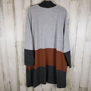 ~ Description: Gray and brown striped cardigan, plush fleece-like material (not sweater material), stretchy