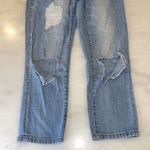 Avenue Rag Soft Blue Denim Straight Leg Destructed Jeans in preloved condition. Loose fit. The softest jeans are as comfortable as a pair of sweat pants. Ripped knees, shredded areas are intentional. Two pockets on back, two on front w/small change pocket. Size-1 Across the waistline - 14.5" Inseam -24.5" Photos are part of the description, zoom to see the detailed condition of these preowned jeans. Feel free to ask questions.