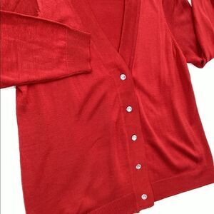 Red Cardigan Sweater With Faux Like Crystal Button Closure