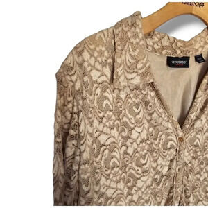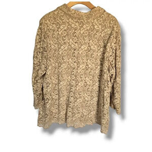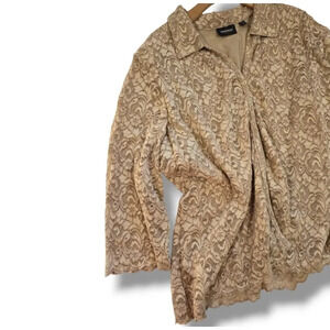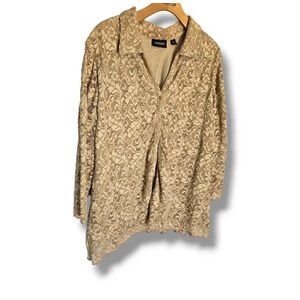 Avenue Stretch Women's Plus Size beige lace lined button-down Blouse - 18/20