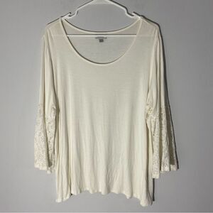 Avenue Women’s Scoop Neck Bell Lace Sleeve White Blouse
