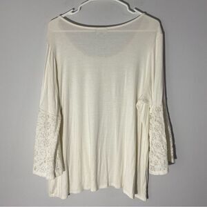 White. See thru. Scoop neck. Bell sleeves. Lace sleeves.