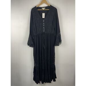 Aveology Tisha Embroidered Lace Black Maxi Dress Boho Gothic Women's Size 18 NWT