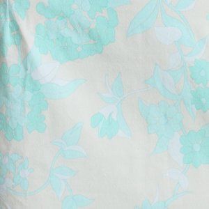 Preowned Averardo Bessi pencil skirt, likely made in the 2000s. Made from a slightly stretchy cotton/lycra blend fabric, it features a pale green and aqua-hued floral print throughout!
