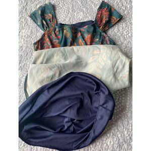 Averie Halley Ruched Midi Dress Flowery Print on Cobalt Blue Size Small - NEW