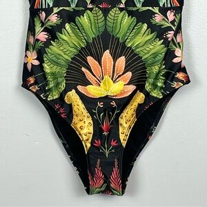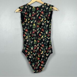 Averie Zip Up One-Piece Blaise Vibrant Rainforest Print swimsuit, small. Wide shoulder, high neck. Great condition. Approximate measurements 13” pit to pit, 28” shoulder to hem.