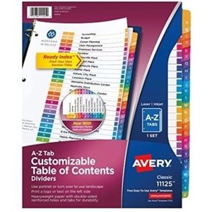 Avery 11125 A-Z Tab Dividers Table of Contents