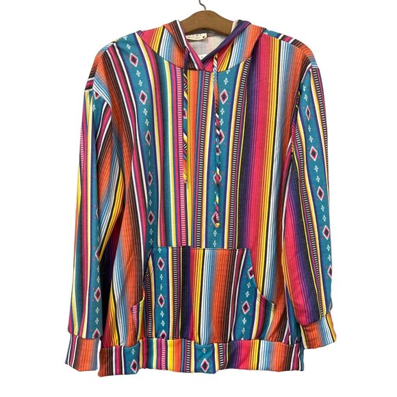 Avery Aztec Pattern Long Sleeve Hoodie Womens L Multicolor Polyester Blend NEW