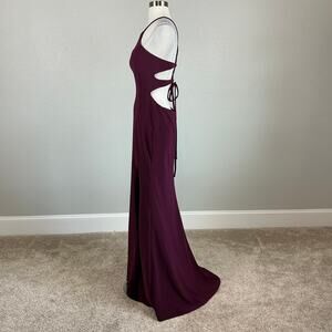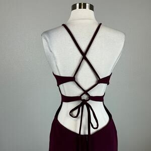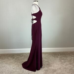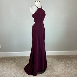 Avery G Backless Halter Evening Gown Wine Red Size 6 Sleeveless Thigh Slit Dress