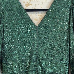 Avery G Long Sleeve Emerald Green Sequin Gown size 2